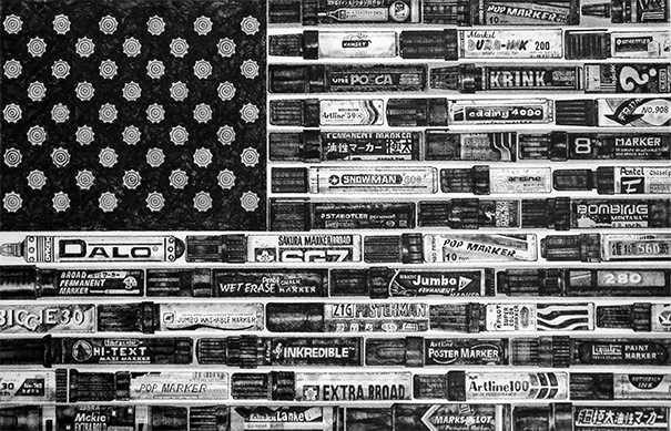 Each detail and color layers was hand drawn with Caran D’Ache Wax Pastel then digitally scanned and edited to make the finished graphic image.