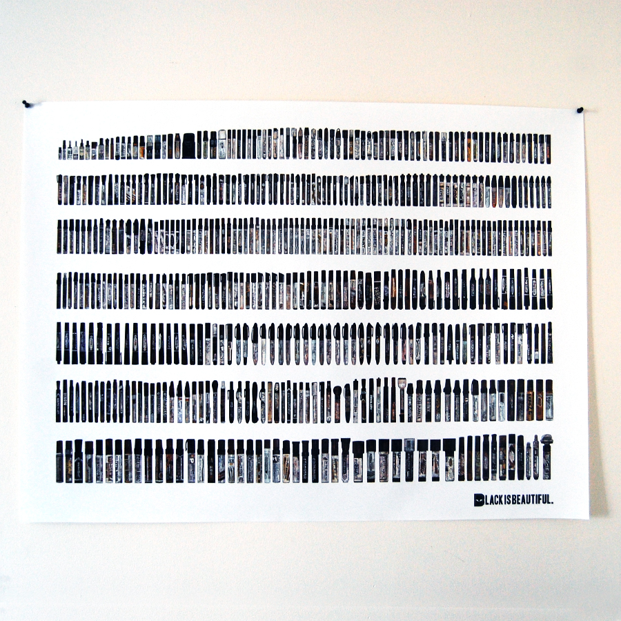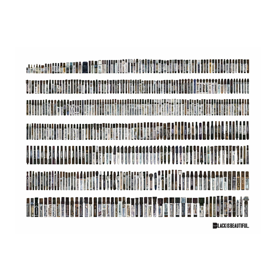An illustrated poster print depicting 500 Black Markers from my archived collection.