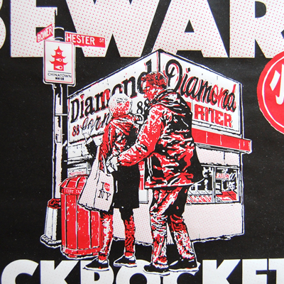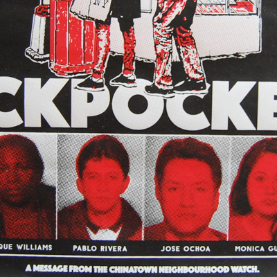 A poster depicting criminal pickpockets active in the Chinatown District of Lower East Side NY.