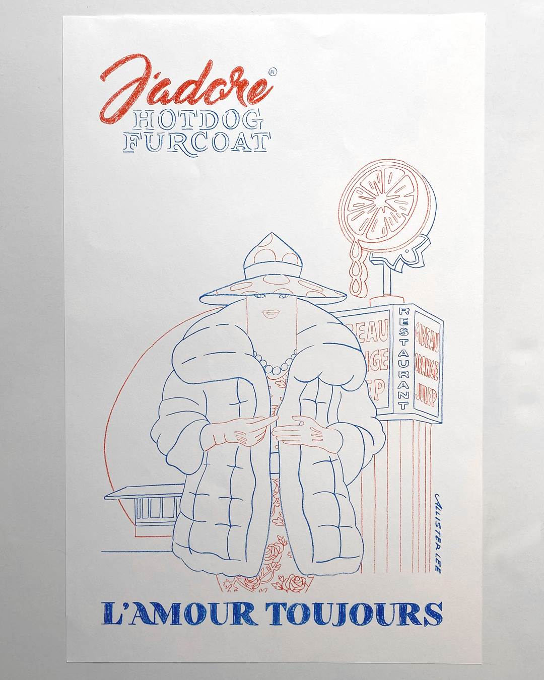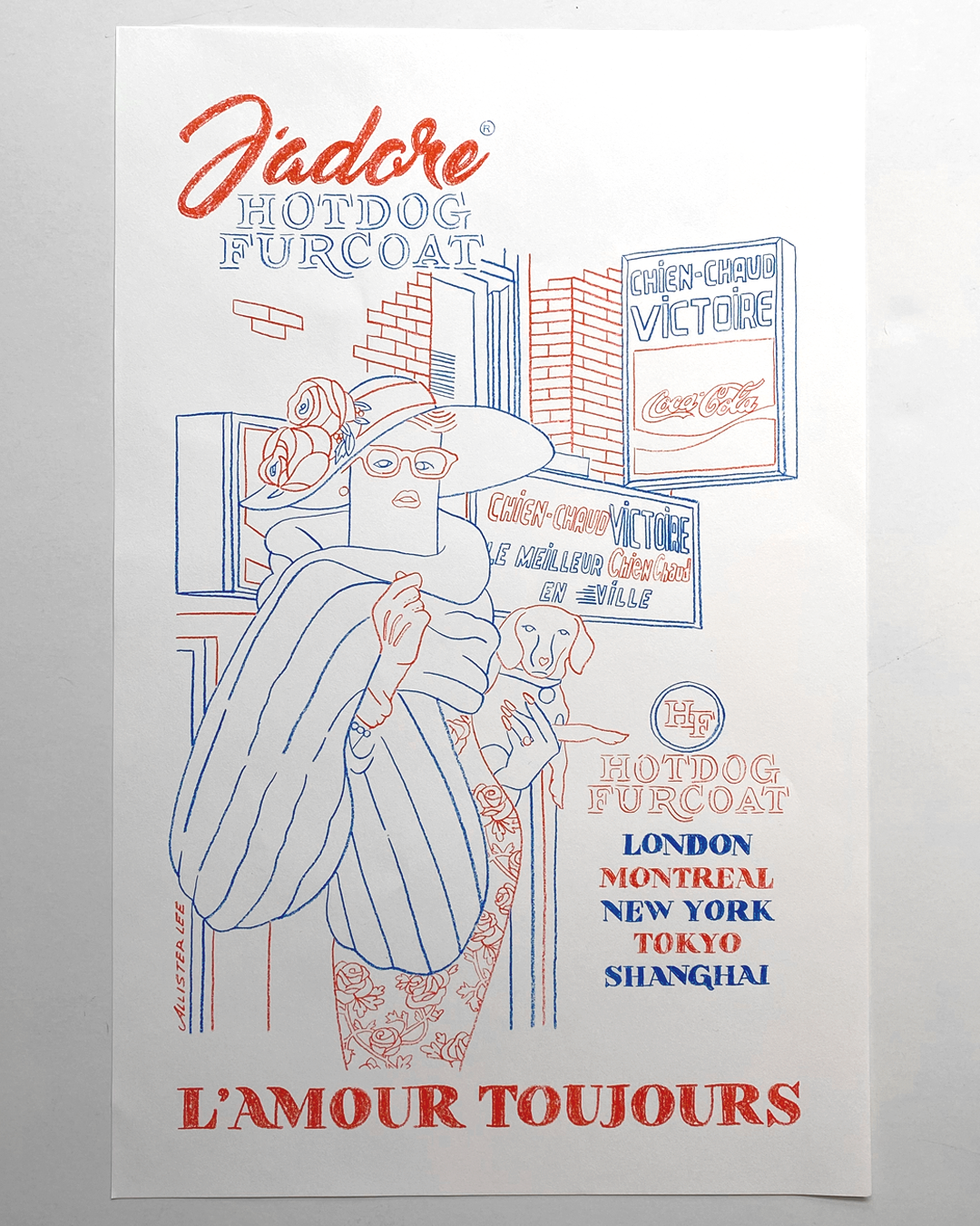 – 2 color RED and BLUE risograph print on bright white bond paper