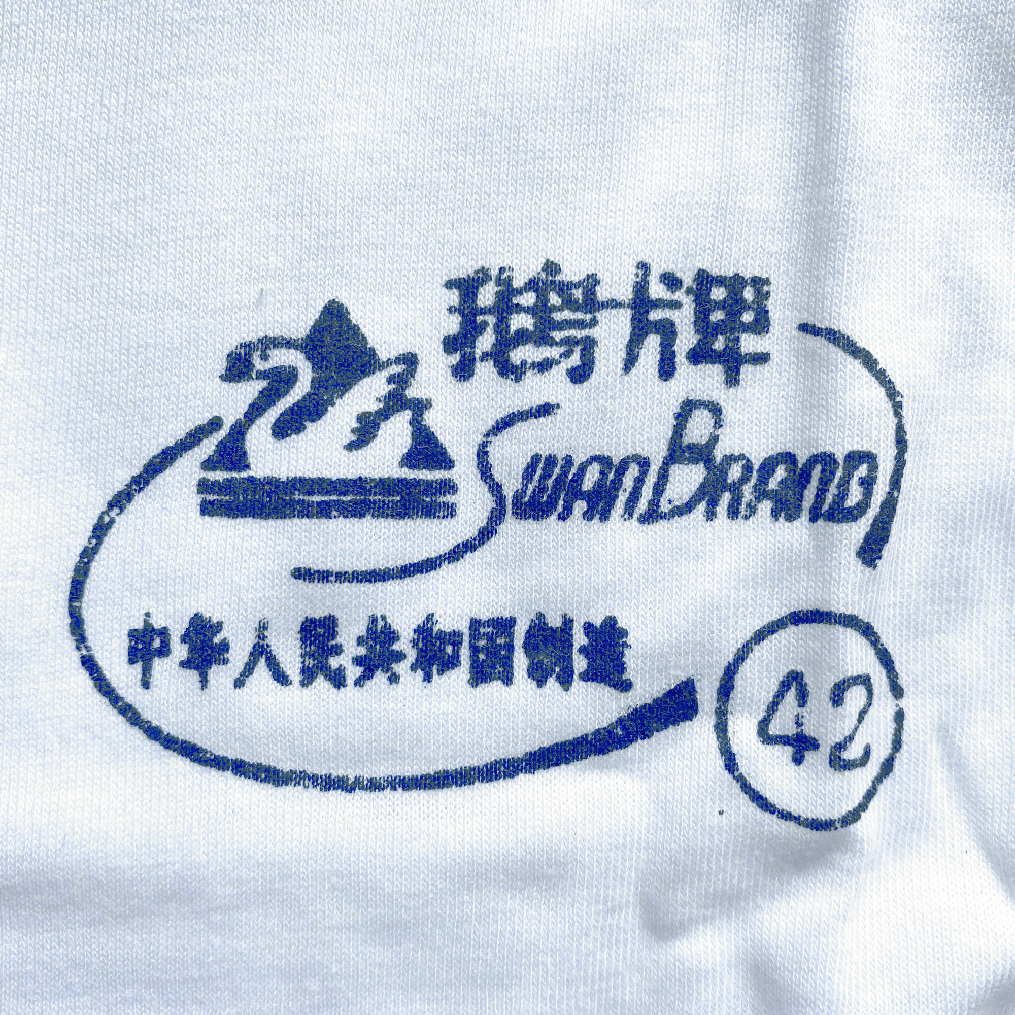 – Stamped on “Swan Brand” sizing label